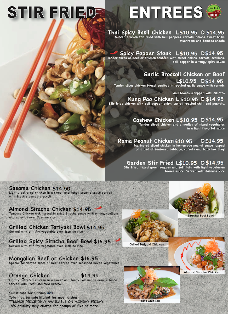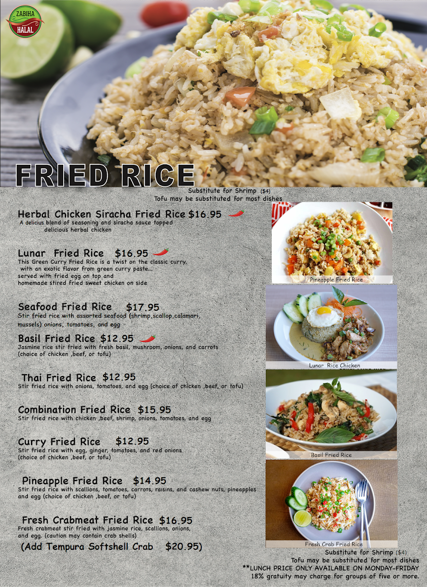 “ Started with a complementary hot and sour soup. It was really good. Had a little spice to it. I'd prefer a little spicier but I think it's a good level for the everyday person. Main course was Pineapple Fried Rice. Order level 5 spice again not enough spice for me personally but I believe it was good for normal people. Chicken was not very seasoned for did not take away from the dish as the rest of the flavors paired well. Had a perfect veggie to rice ratio as well. They did bring 3 options to add spice for my crazy liking. Didn't reach the desired level but I don't fault them for it as I'm sure I killed my tongue years ago. The restaurant is smaller but nice setup with enjoyable music. The staff was very friendly and attentive. Azher waited on me today and again can't say enough about the experience. Will be coming back. ”